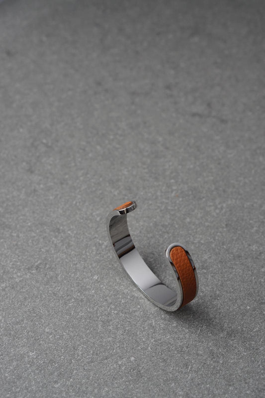 Bratara dama din inox 316 L cu insertie de piele portocalie