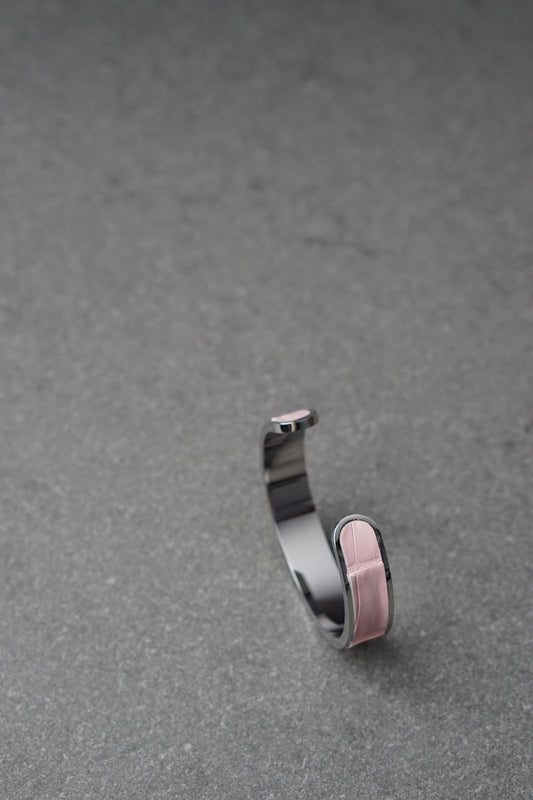 Bratara dama din inox 316 L cu insertie de piele roz