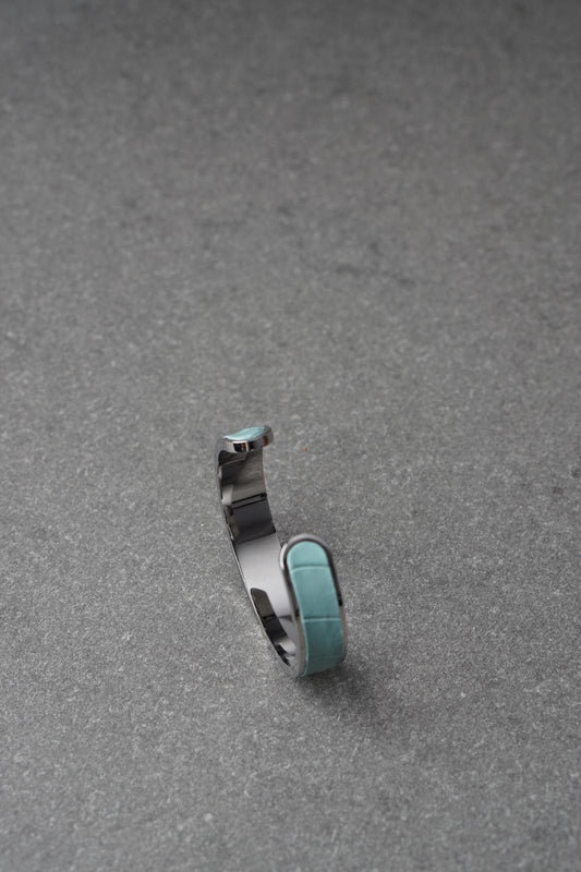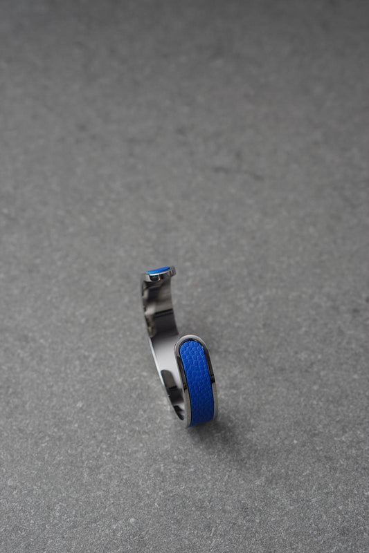 Bratara dama din inox 316 L cu insertie de piele albastra