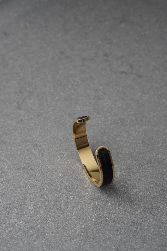 Bratara dama din inox 316 L cu insertie de piele neagra