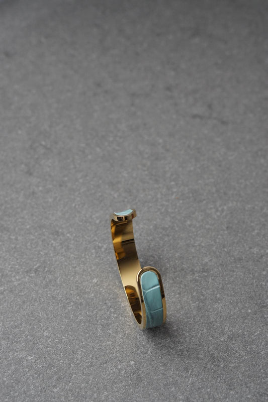 Bratara dama din inox 316 L cu insertie de piele verde