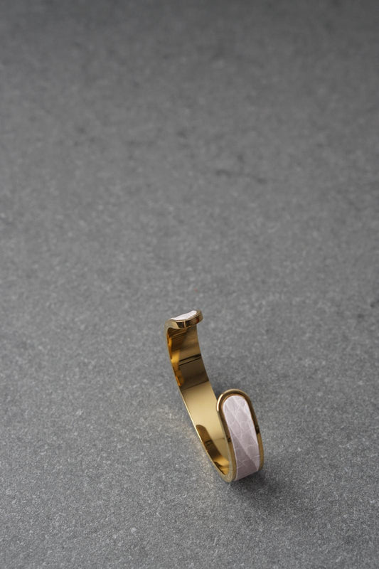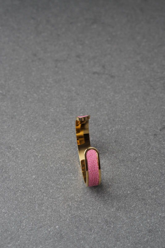 Bratara dama din inox 316 L cu insertie de piele culoarea somon