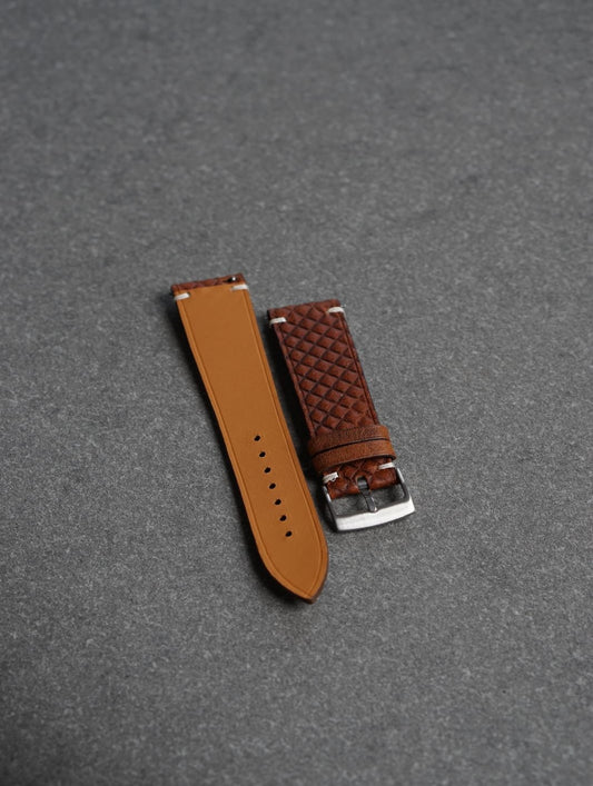 Curea de ceas cu profil bombat din piele tabacita vegetal full-grain embosata maro + Zermatt