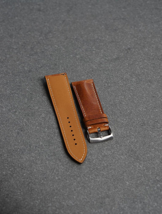 Curea de ceas profil bombat din piele full-grain cognac Badassi Carlo Wax+ Zermatt