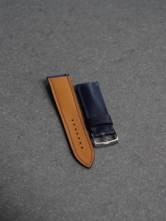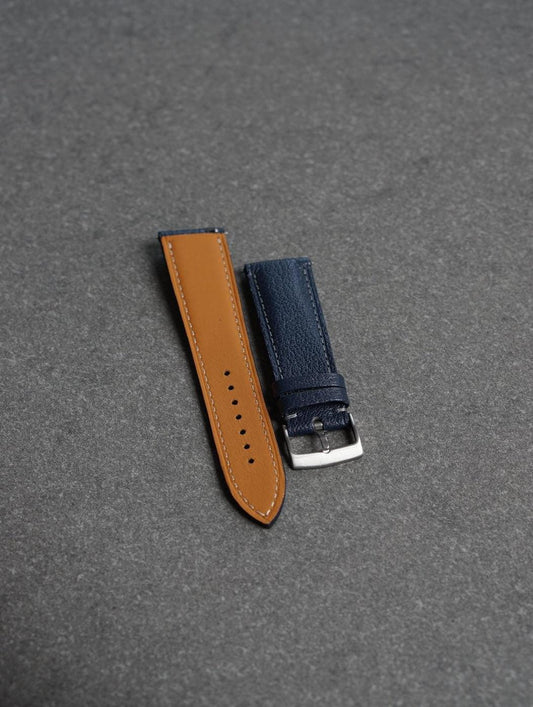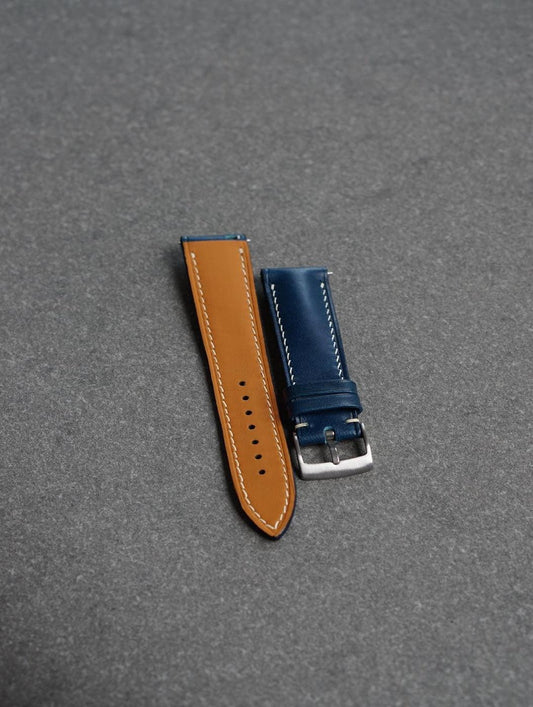 Curea de ceas profil bombat din piele full-grain albastra Epsom + Zermatt