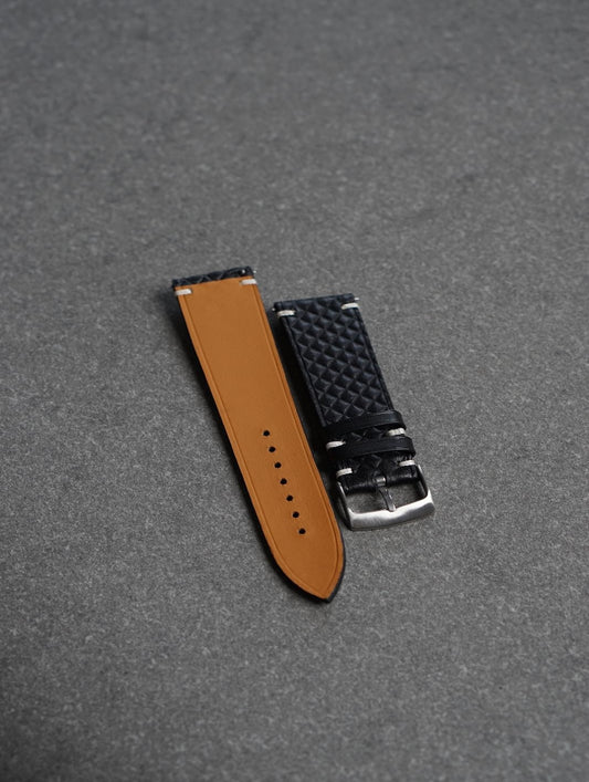 Curea de ceas din piele tabacita vegetal full-grain embosata neagra + Zermatt