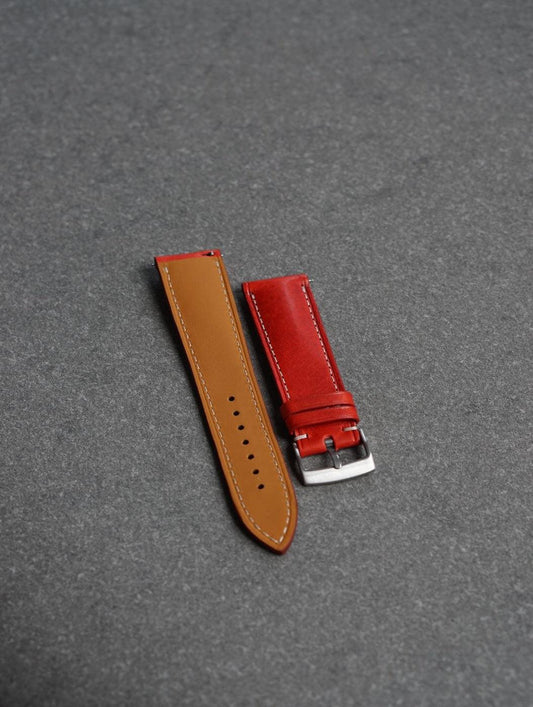 Curea de ceas profil bombat din piele full-grain rosie Badassi Carlo Wax+ Zermatt