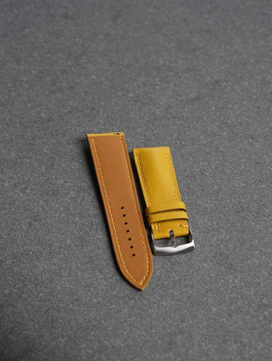 Curea de ceas profil bombat din piele full-grain galbena Epsom + Zermatt