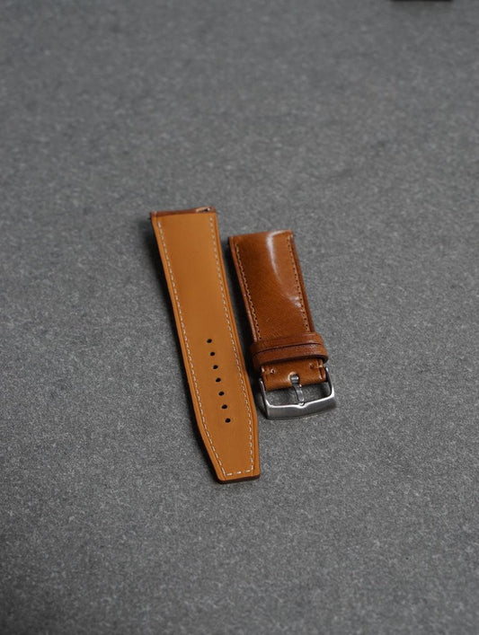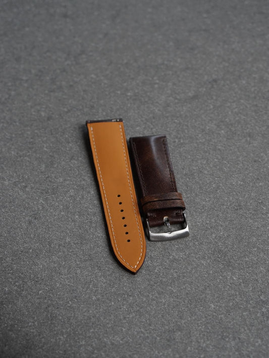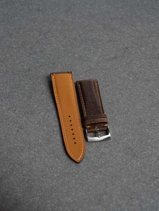 Curea de ceas profil bombat din piele Horween Chromepak full-grain maro + Zermatt