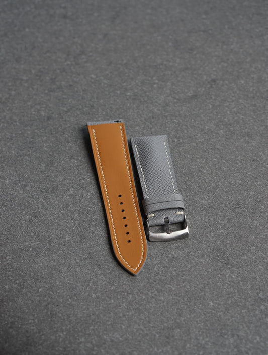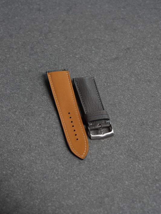 Curea de ceas profil bombat din piele full-grain gri Epsom + Zermatt