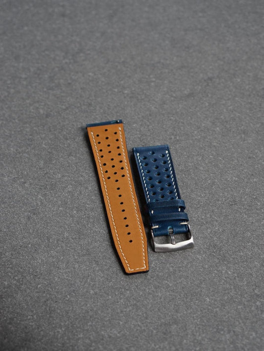 Curea de ceas Rally din piele full-grain albastra Buttero + Zermatt