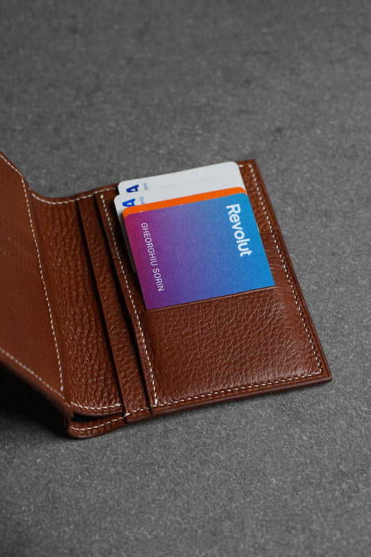 Portofel din piele lucrat 100% manual din piele naturală, Maro