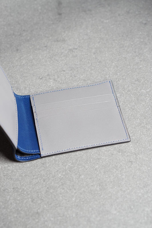 Portofel din piele lucrat 100% manual din piele naturală, Albastru - Gri