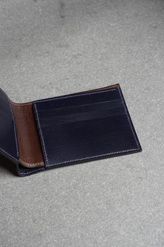 Portofel din piele lucrat 100% manual din piele naturală, Maro+Albastru