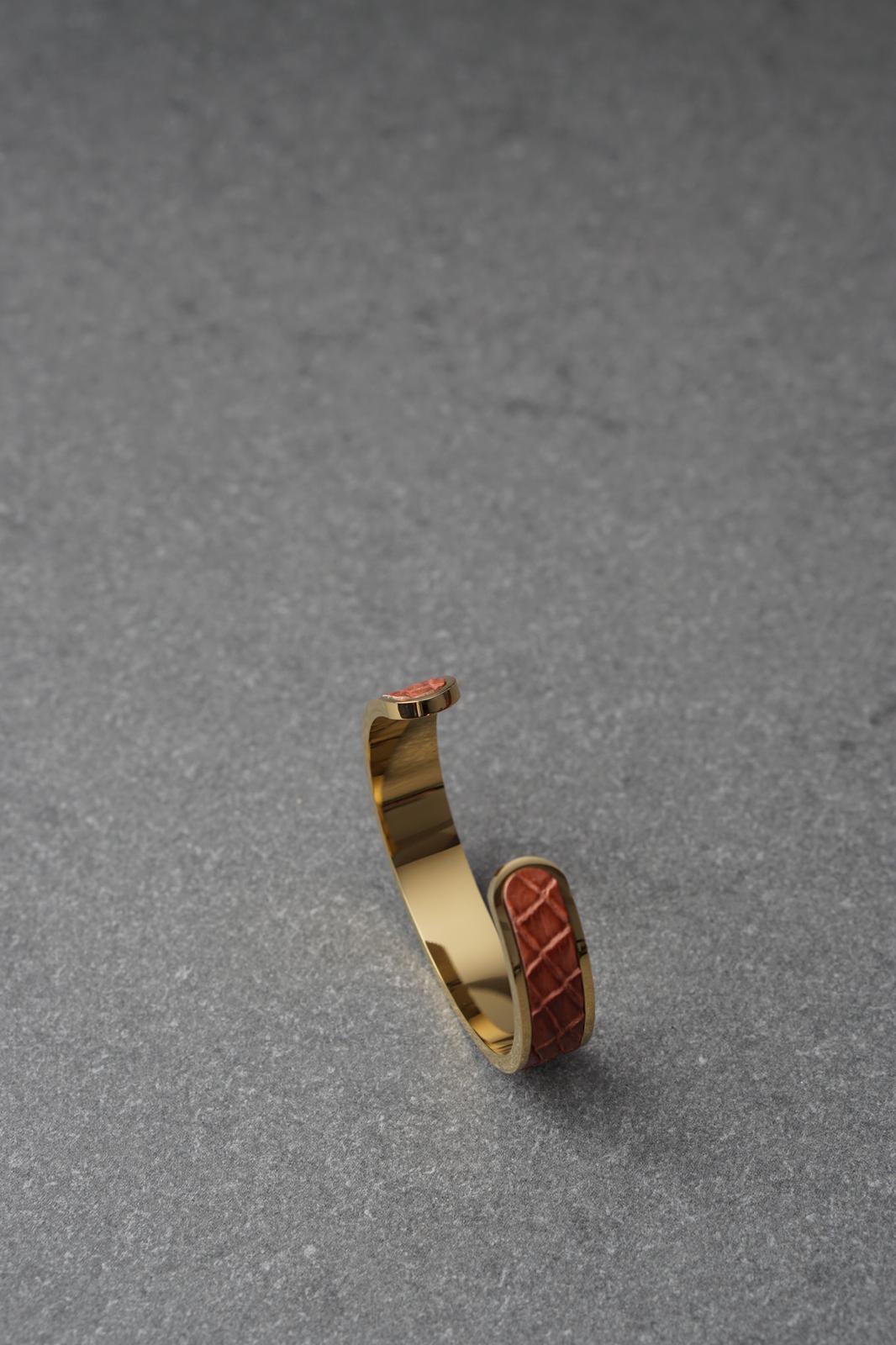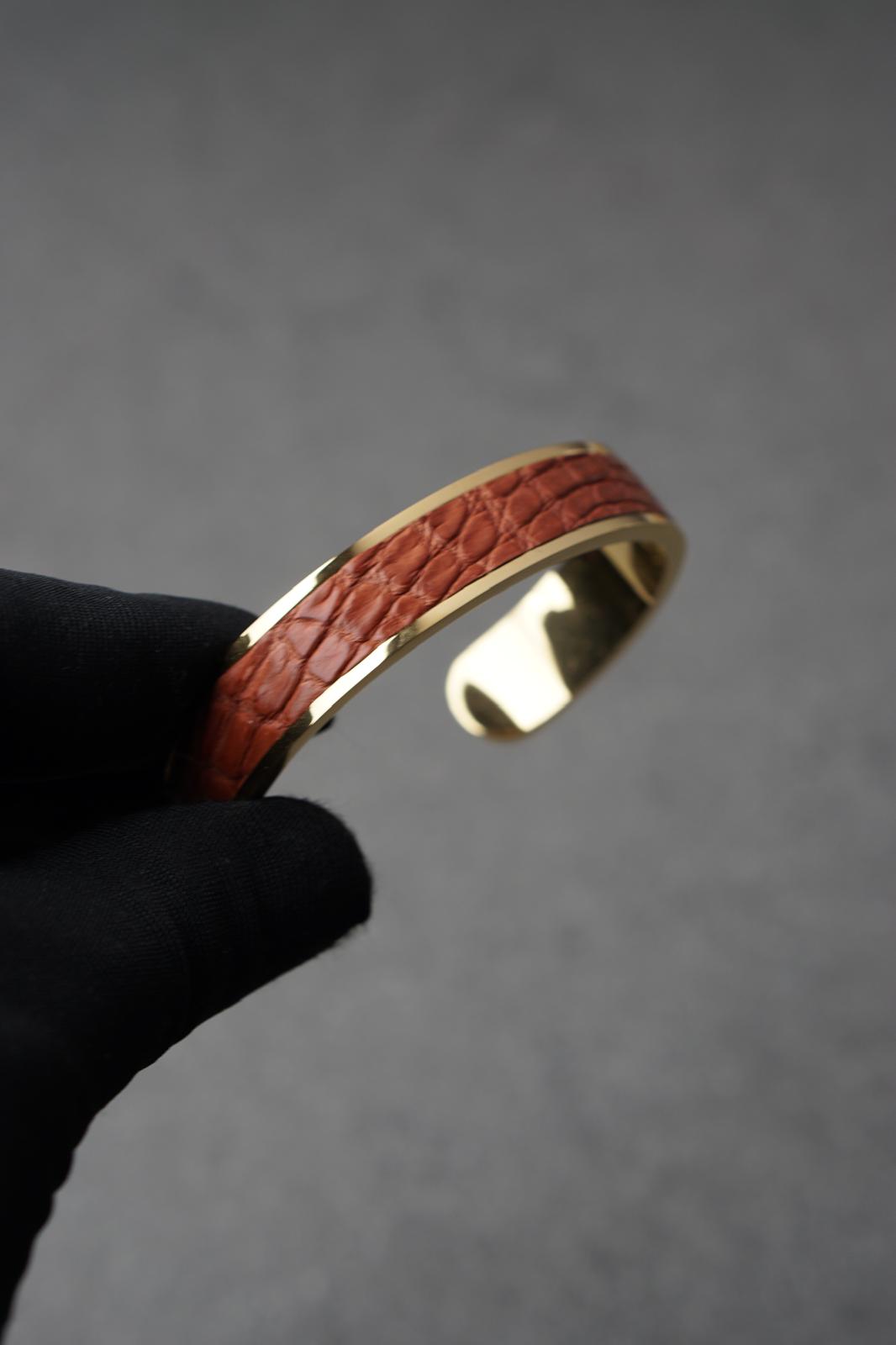 Bratara dama din inox 316 L cu insertie de piele maro deschis