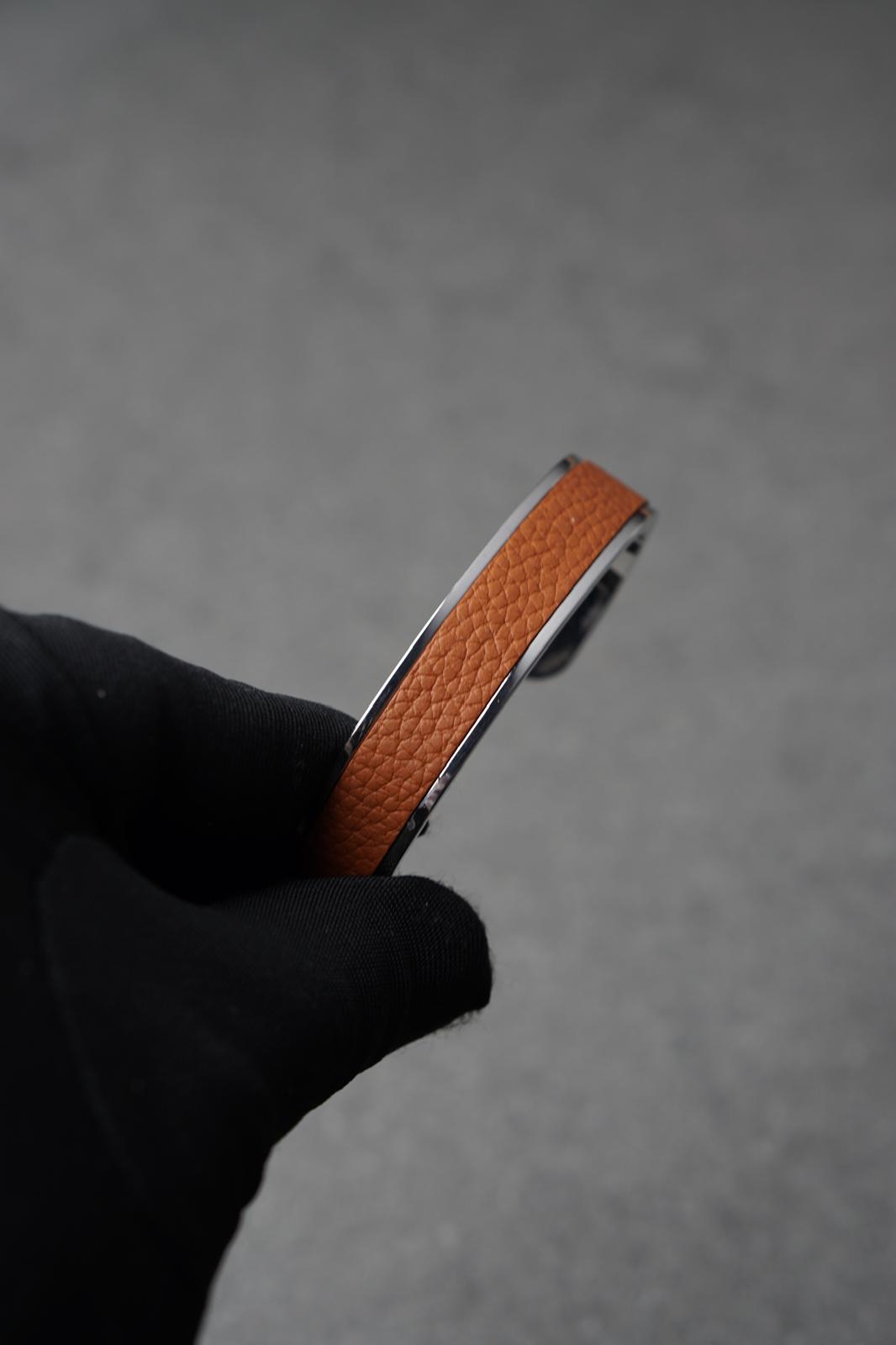 Bratara dama din inox 316 L cu insertie de piele mustar