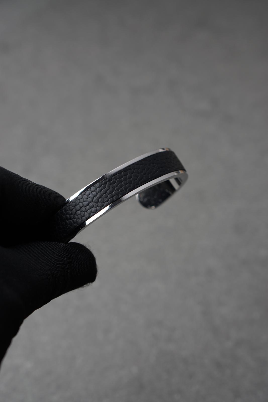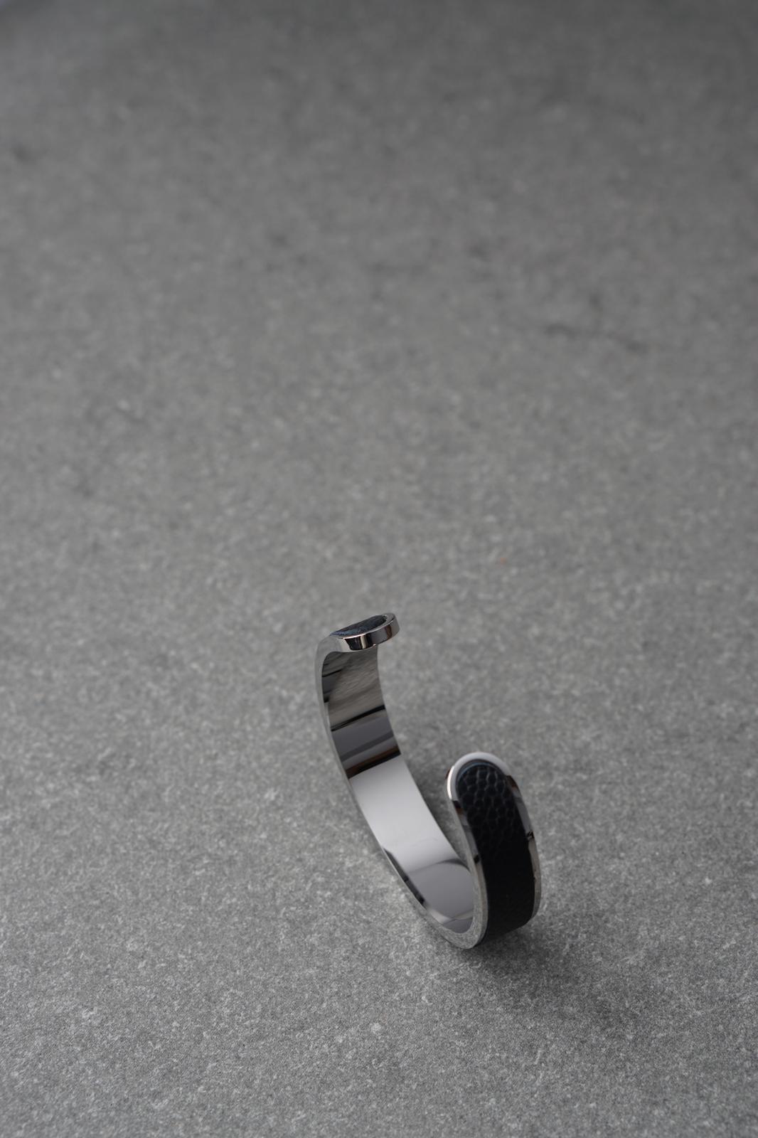 Bratara dama din inox 316 L cu insertie de piele neagra