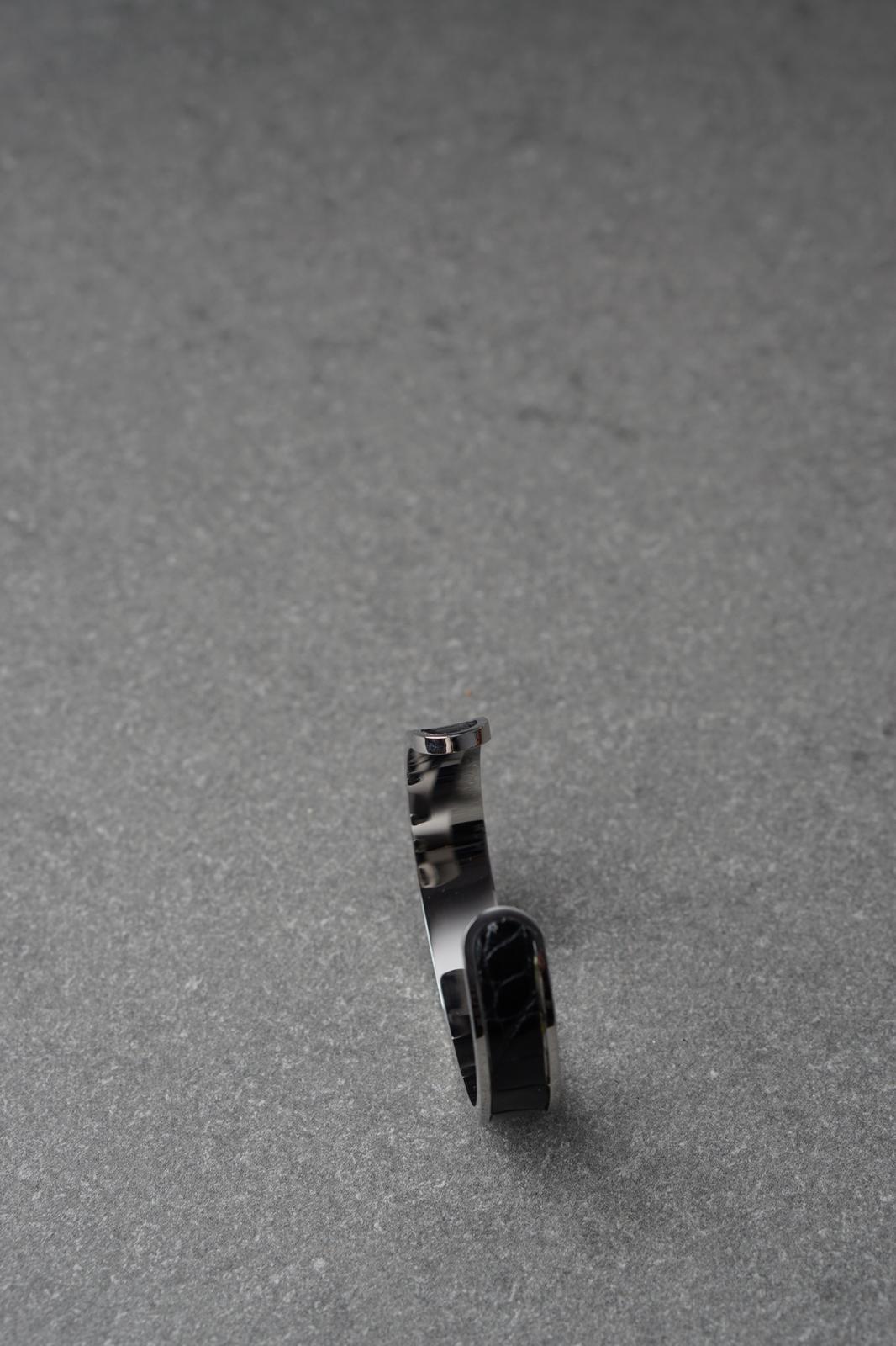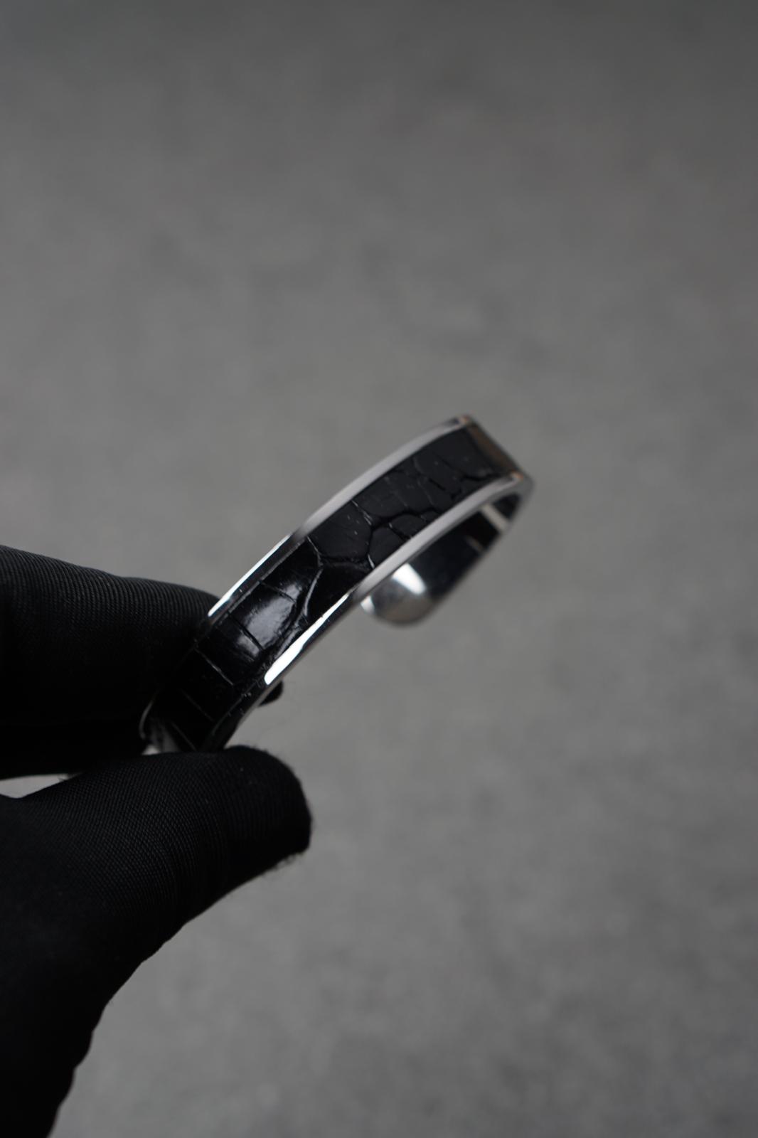 Bratara dama din inox 316 L cu insertie de piele neagra