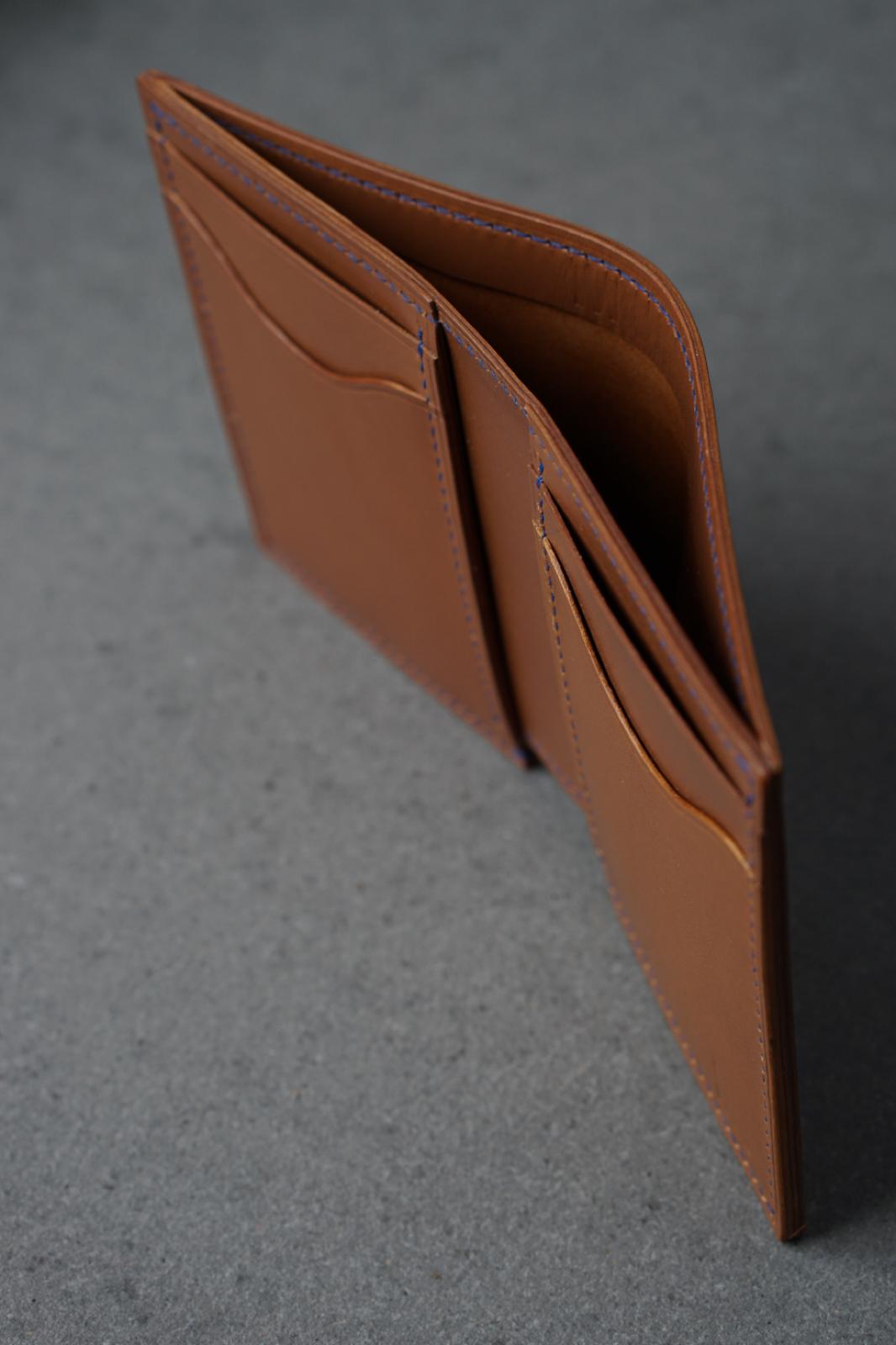 Portofel elegant și durabil lucrat 100% manual in Romania. Confecționat din piele de vitel într-o nuanță de maro. Designul minimalist și cusăturile de calitate oferă un aspect premium și rafinat.