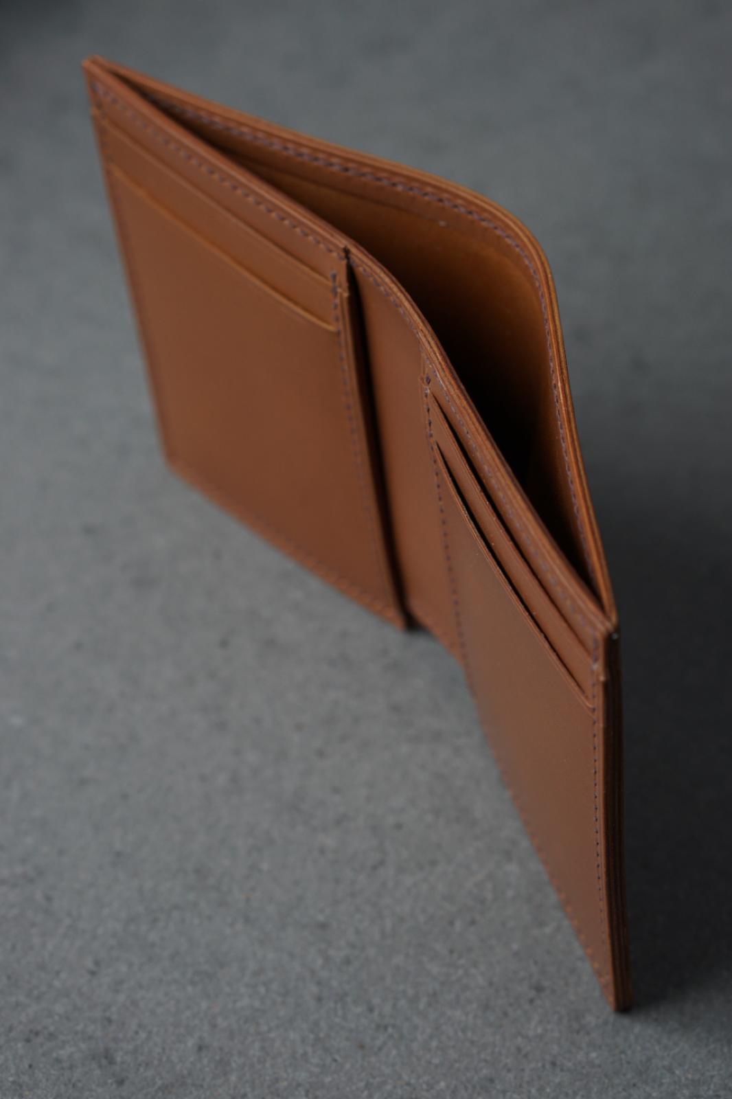 Portofel elegant și durabil lucrat 100% manual in Romania. Confecționat din piele de vitel într-o nuanță de maro. Designul minimalist și cusăturile de calitate oferă un aspect premium și rafinat.