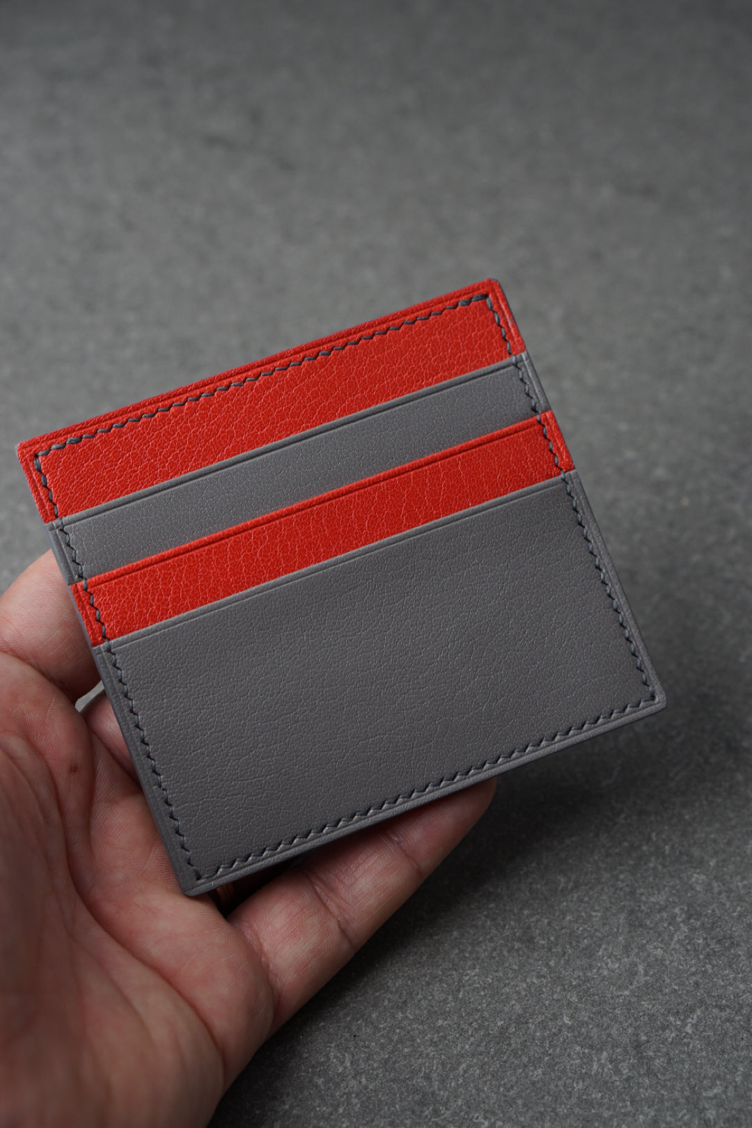 Portofel pentru carduri din piele, lucrat 100% manual din piele culoarea roșie si gri