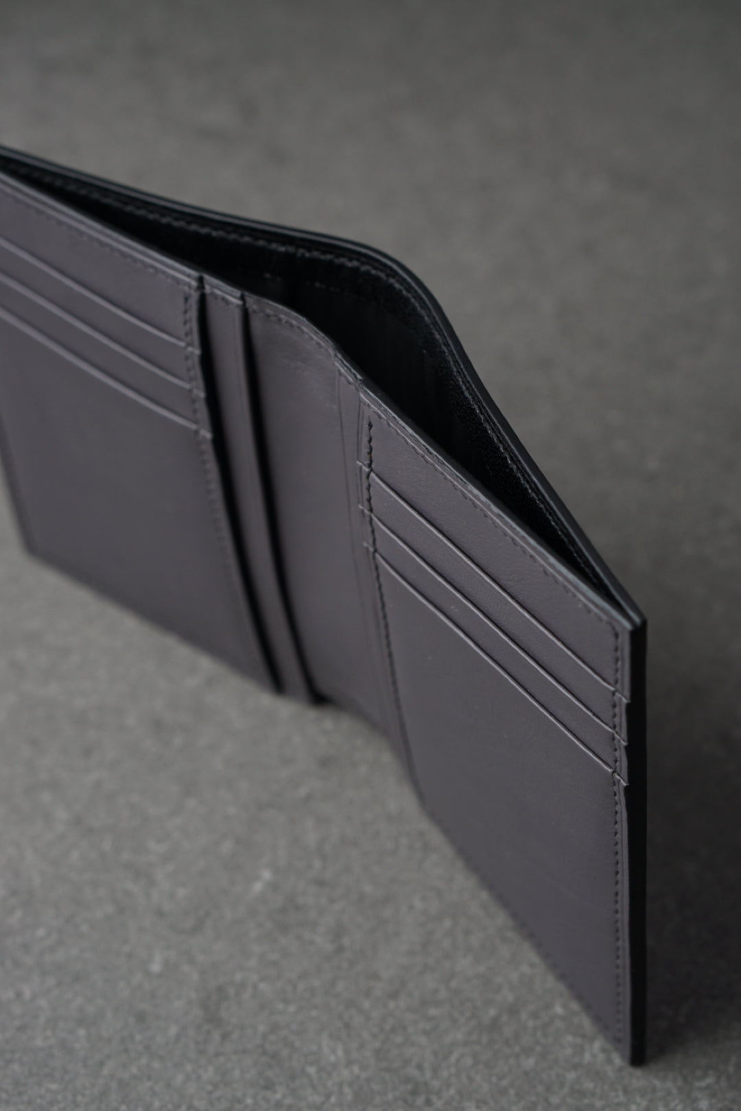 Portofel elegant și durabil lucrat 100% manual in Romania. Confecționat din piele de capra într-o nuanță de negru cu un finisaj mat si interiorul gri. Designul minimalist și cusăturile de calitate oferă un aspect premium și rafinat.