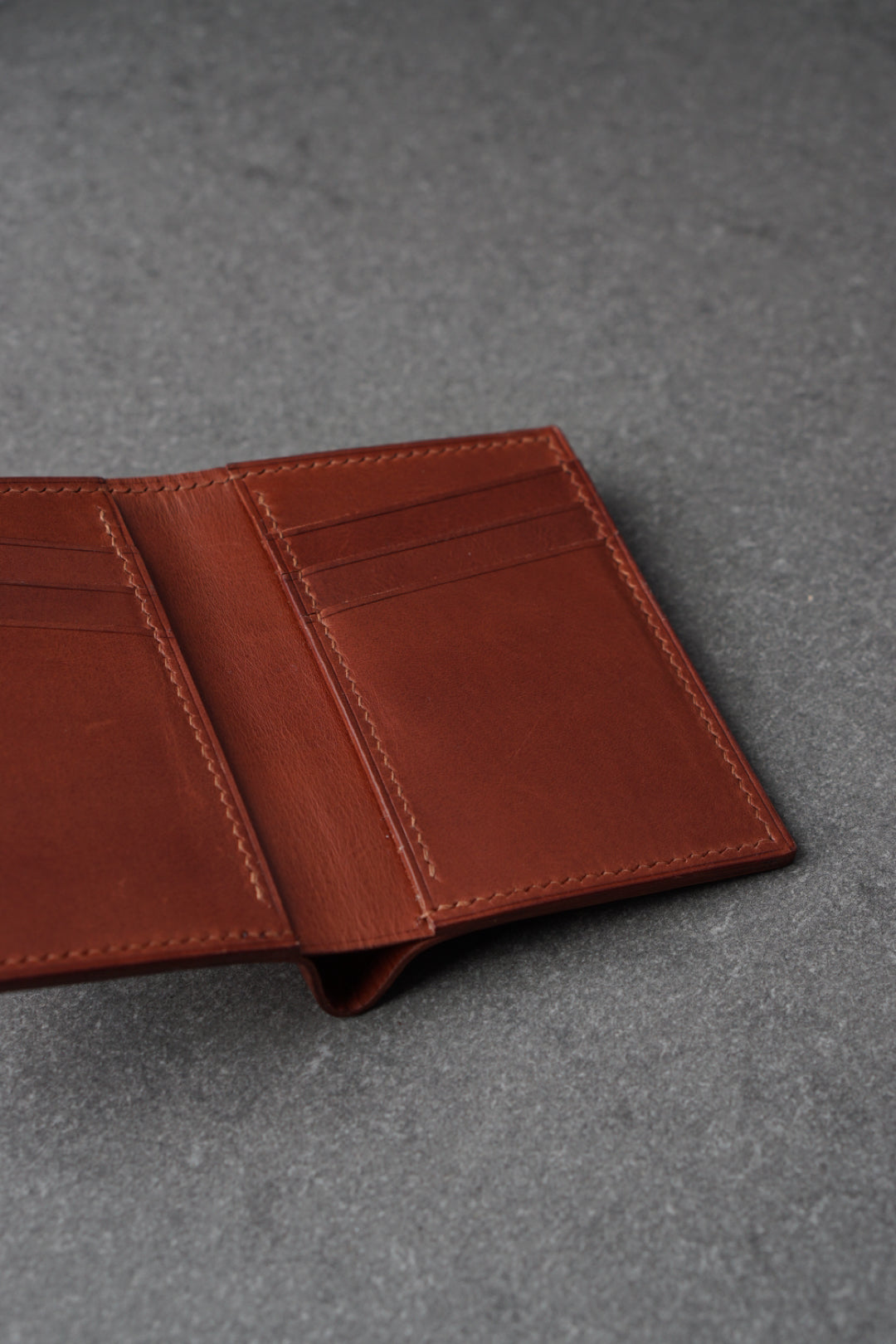 Portofel elegant și durabil lucrat 100% manual in Romania. Confecționat din piele de vita tabacita vegetal într-o nuanță de maro deschis cu un finisaj mat. Designul minimalist și cusăturile de calitate oferă un aspect premium și rafinat.