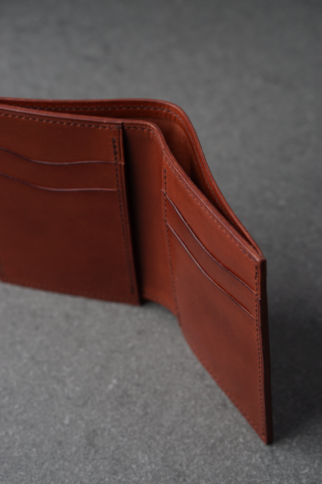 Portofel elegant și durabil lucrat 100% manual in Romania. Confecționat din piele de capra într-o nuanță de maro cu un finisaj putin lucios. Designul minimalist și cusăturile de calitate oferă un aspect premium și rafinat.