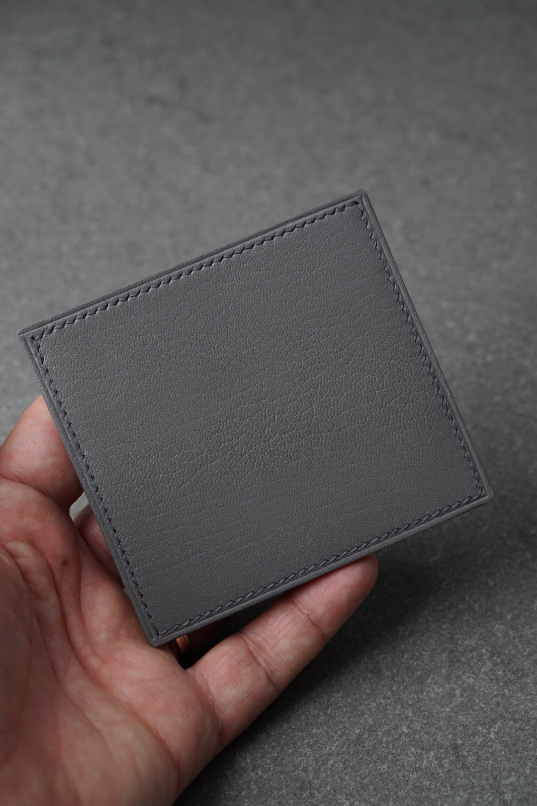 Portofel elegant și durabil lucrat 100% manual in Romania. Confecționat din piele de vitel tabacita crom într-o nuanță gri. Designul minimalist și cusăturile de calitate oferă un aspect premium și rafinat.